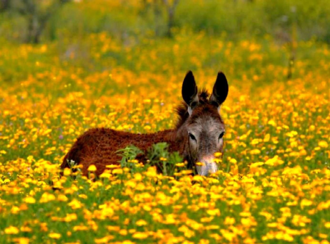 Фото: Милые ослики в цветах