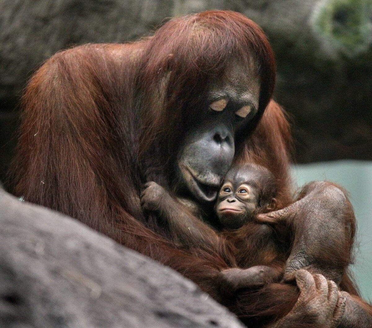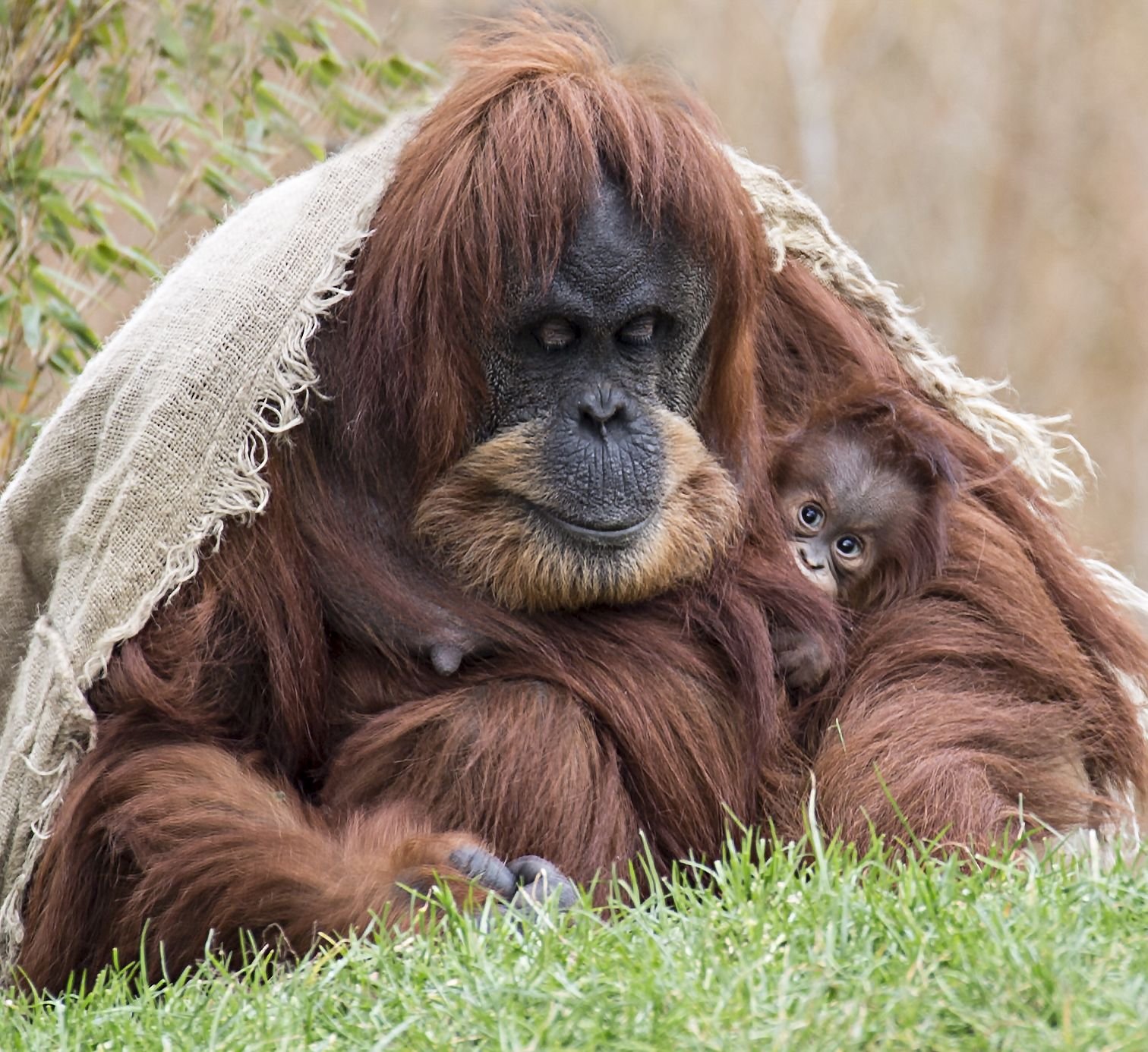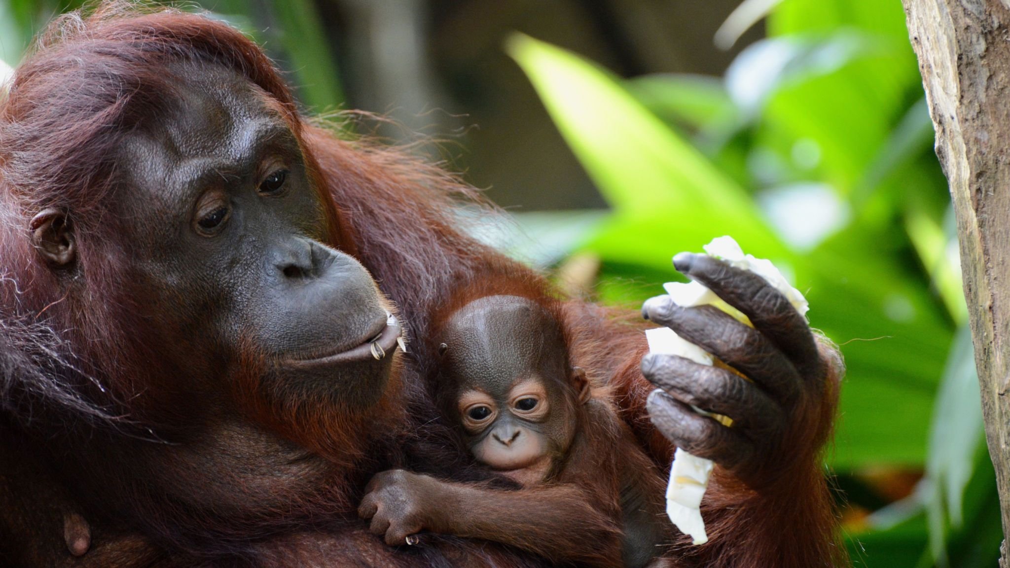 Фото: Самка орангутана с детенышем