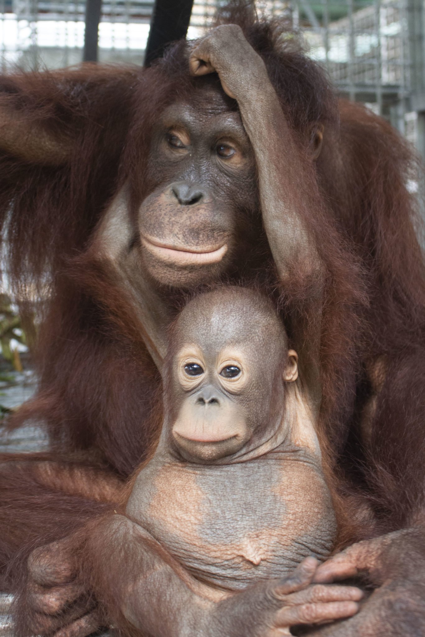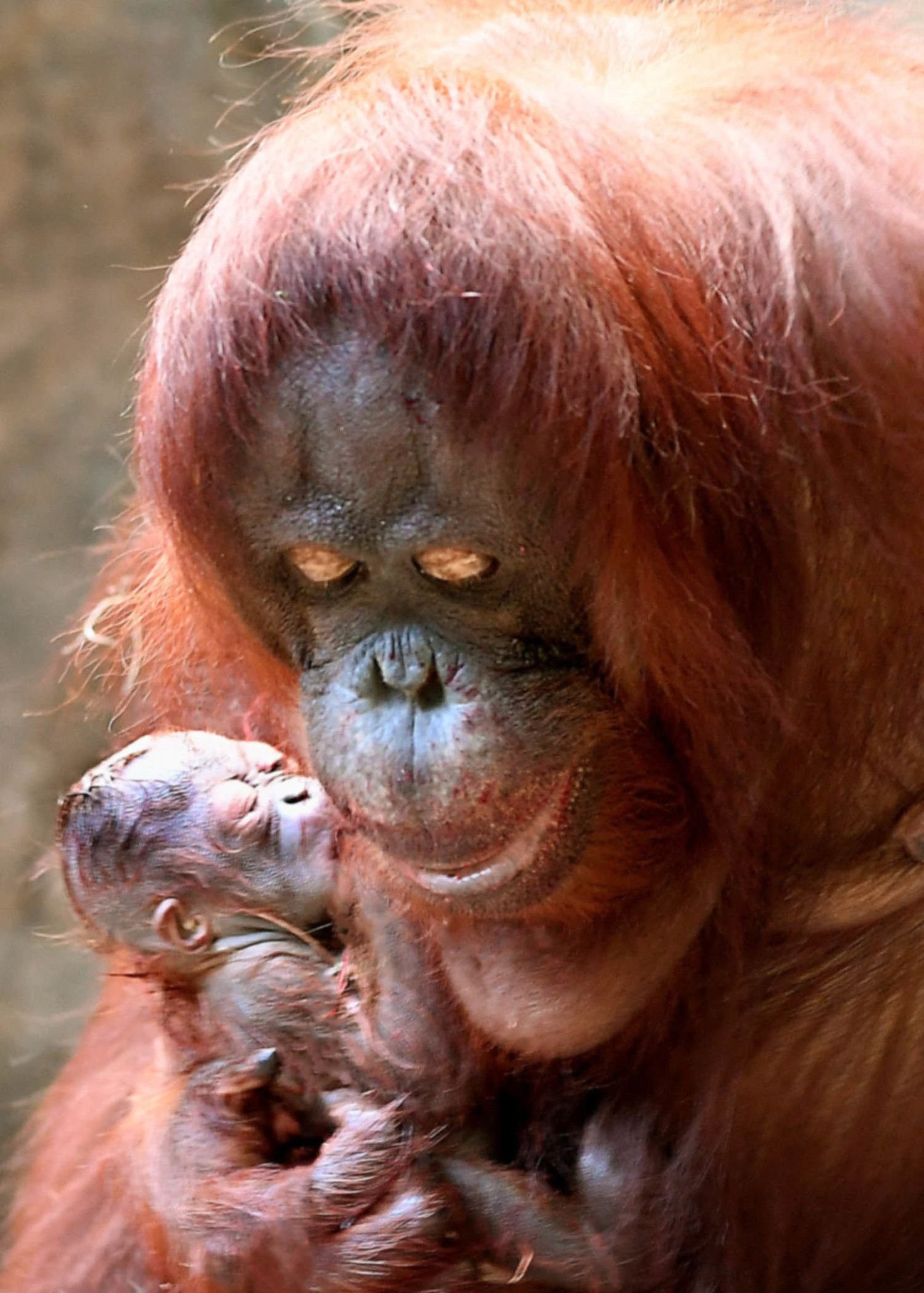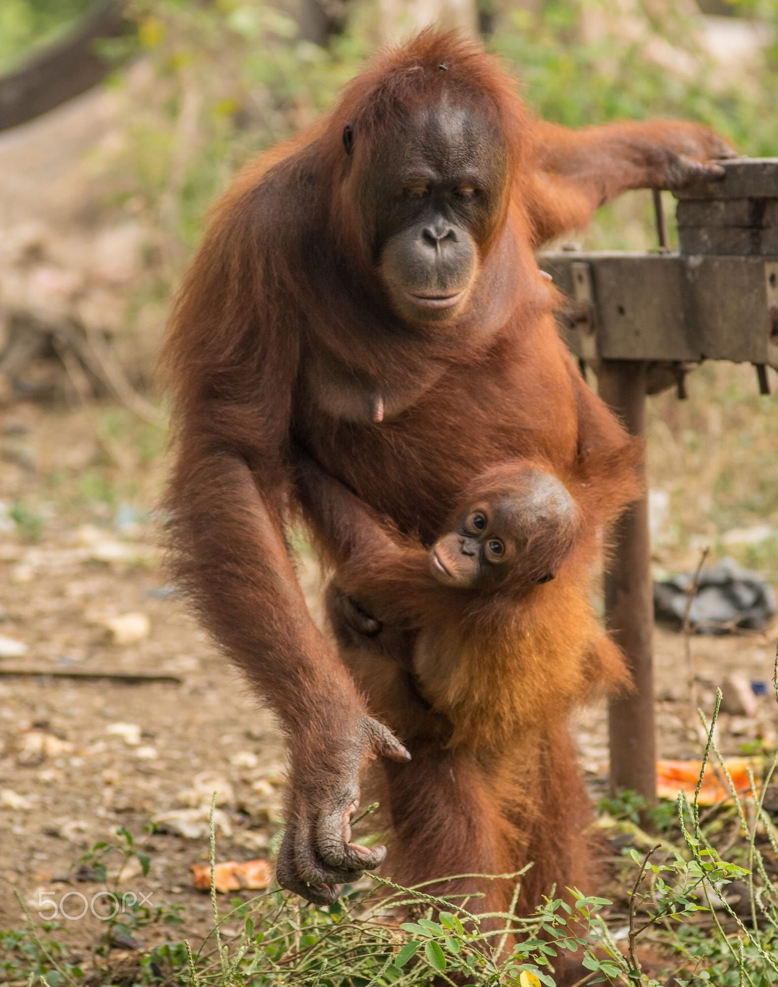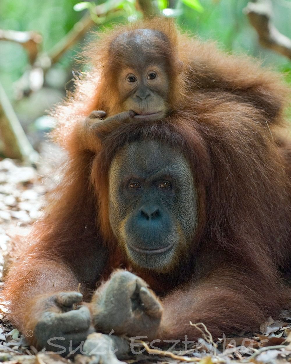 Фото: Самка орангутана с детенышем