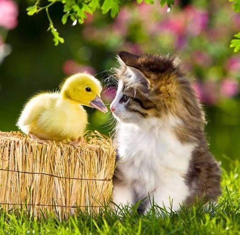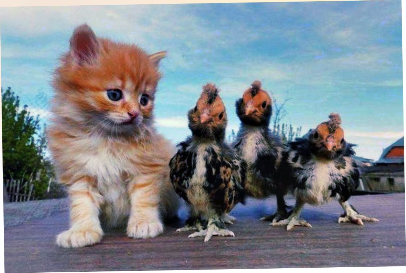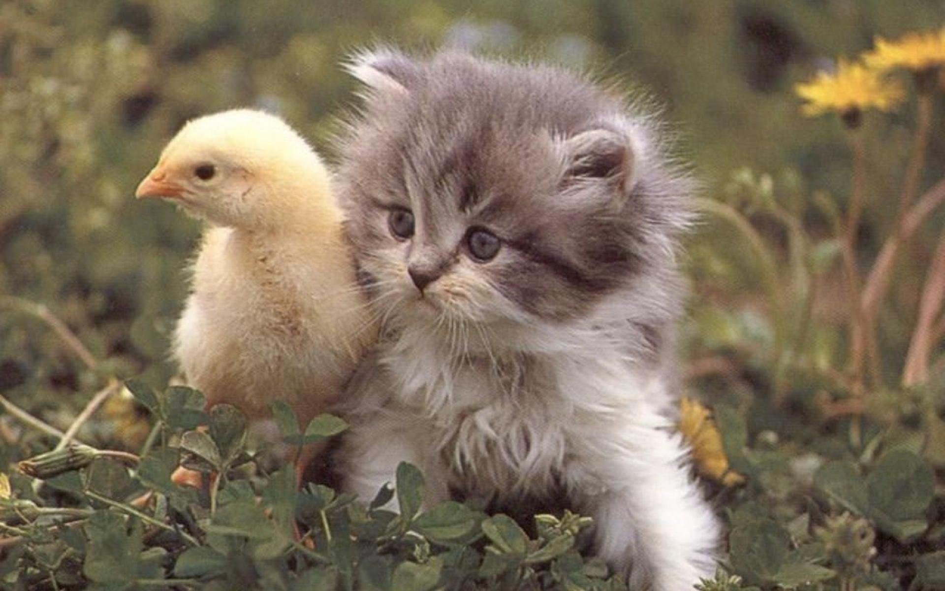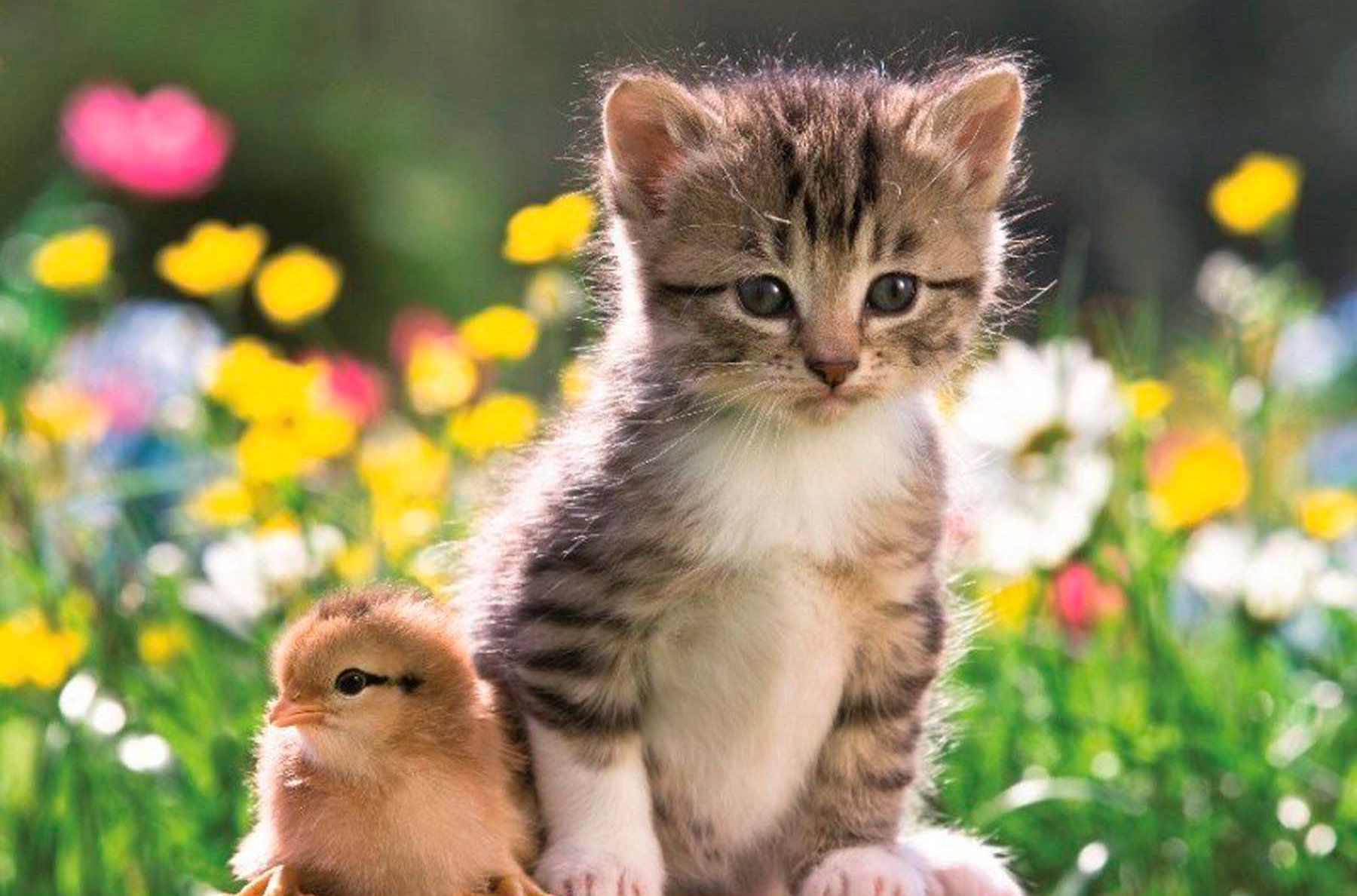 Фото: Котенок и цыпленок
