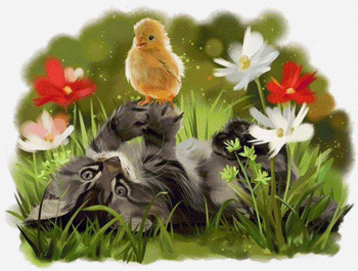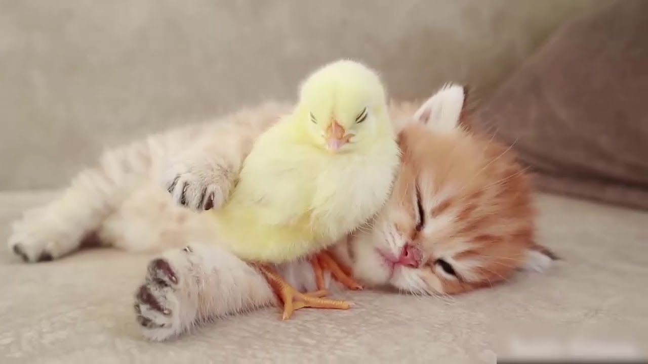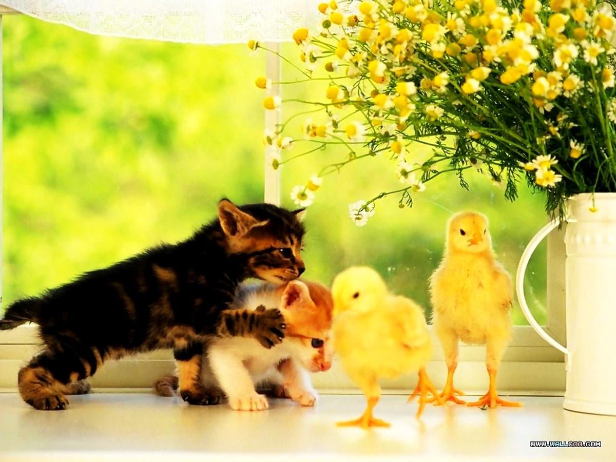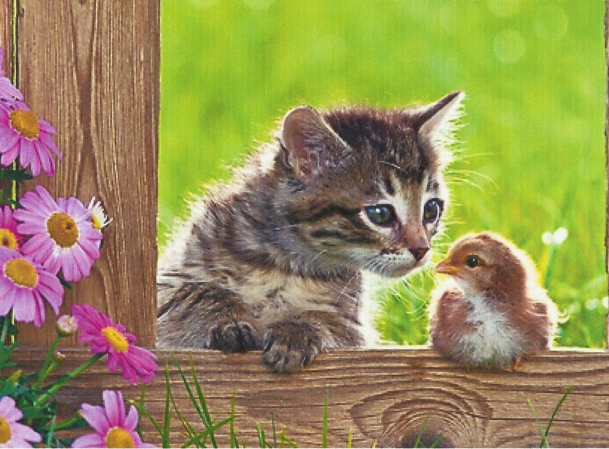 Фото: Котенок и цыпленок