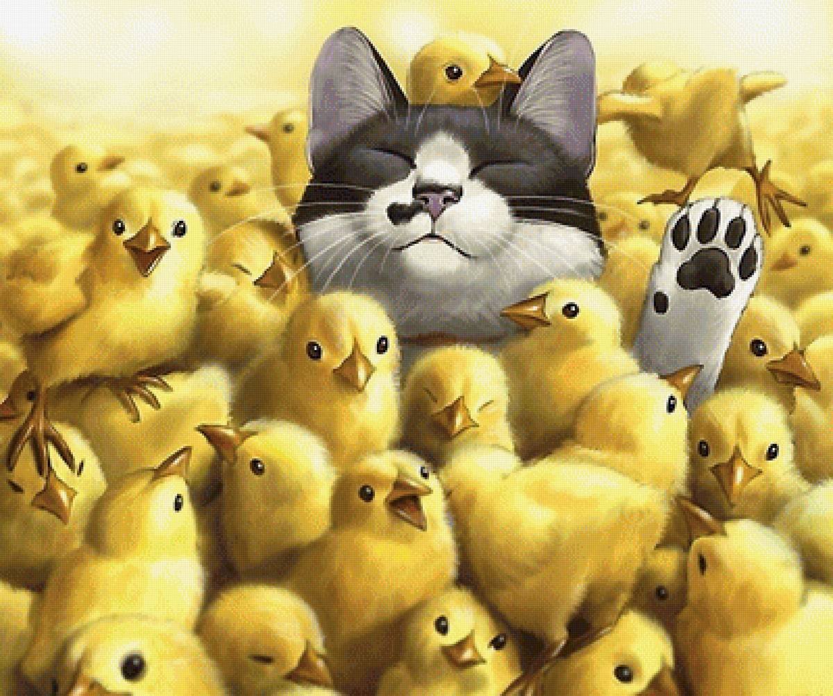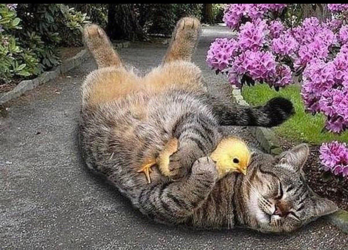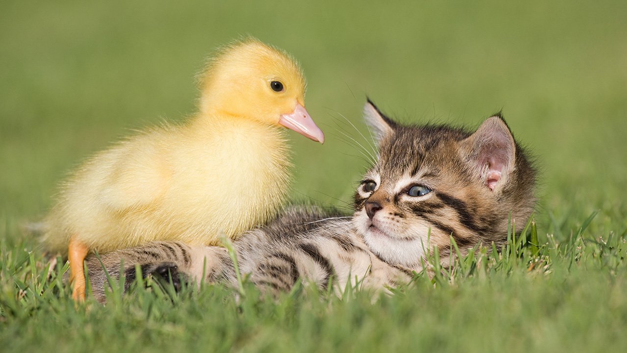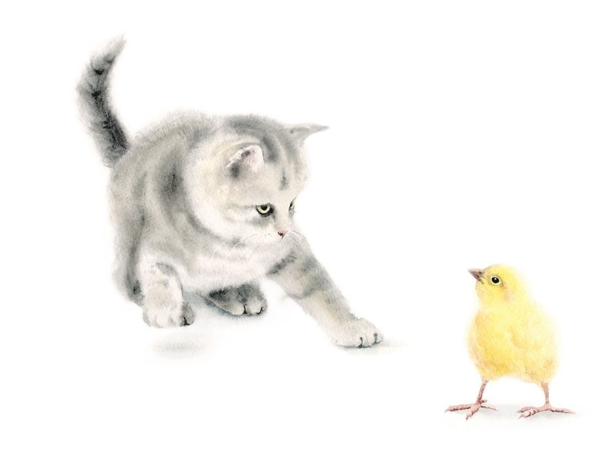 Фото: Котенок и цыпленок
