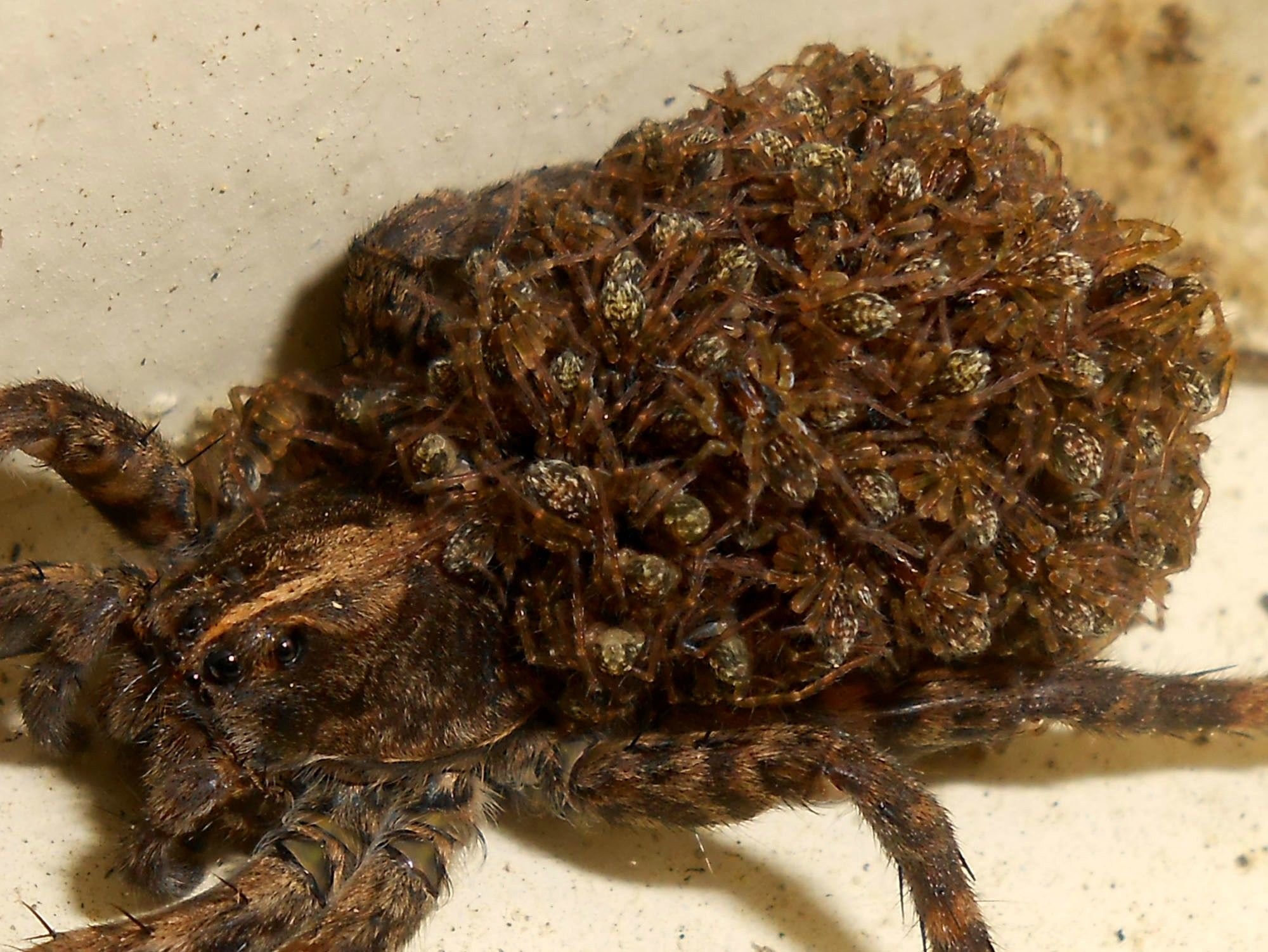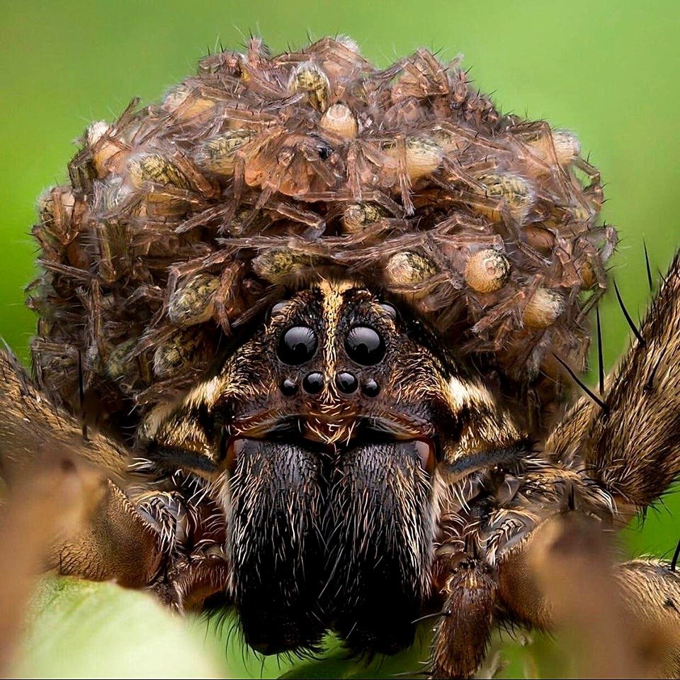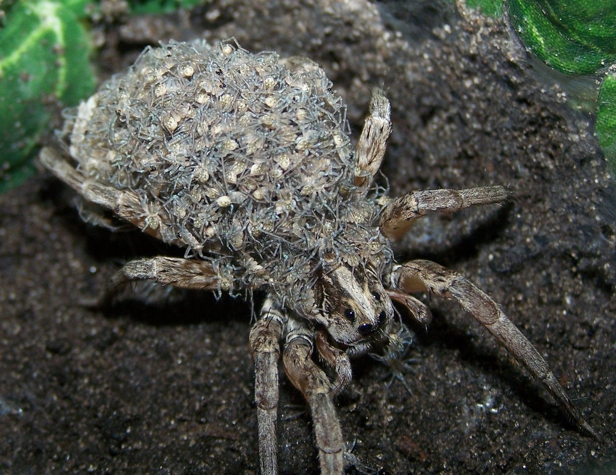 Фото: Паук волк с паучатами