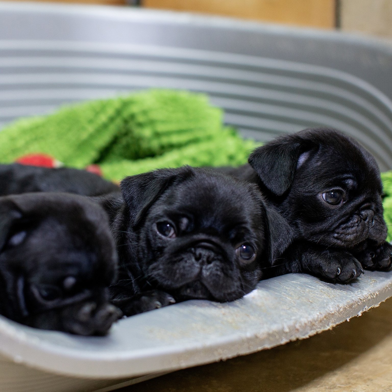 Фото: Черные мопсы в загородном доме