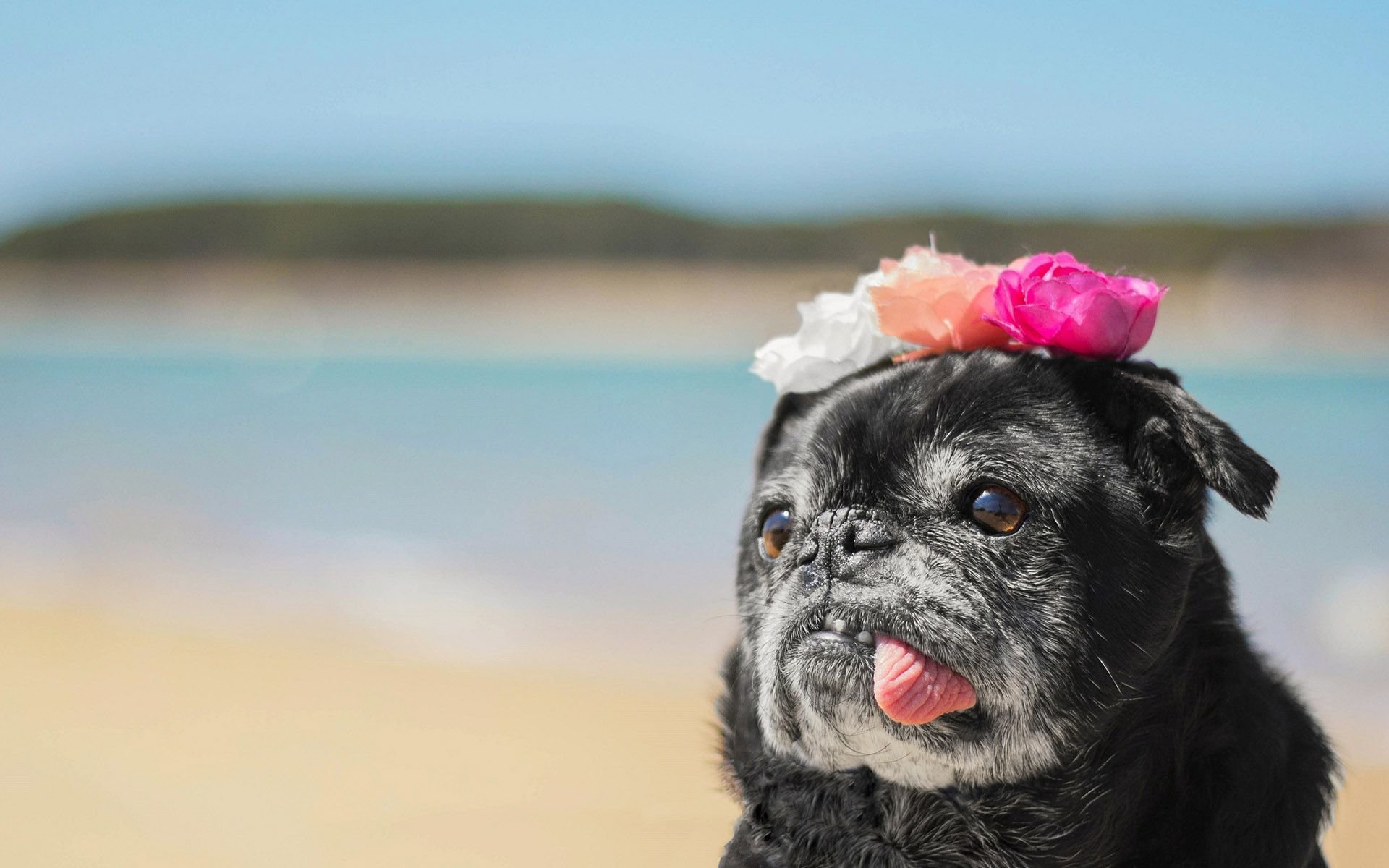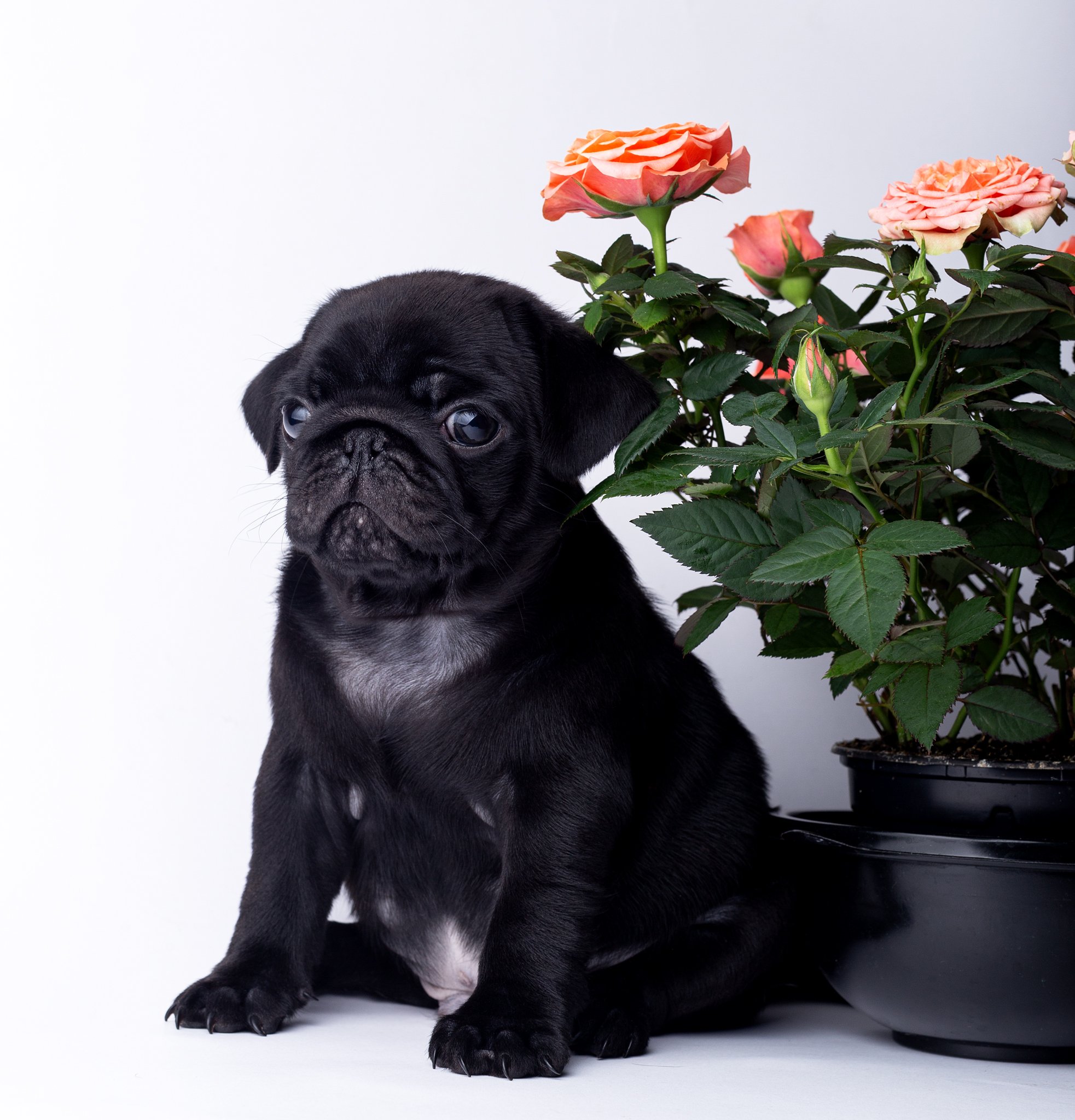 Фото: Черный Мопс с цветами