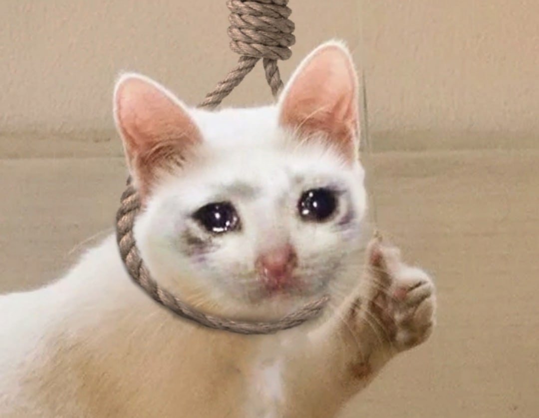 Фото: Плачущий кот с пальцем вверх