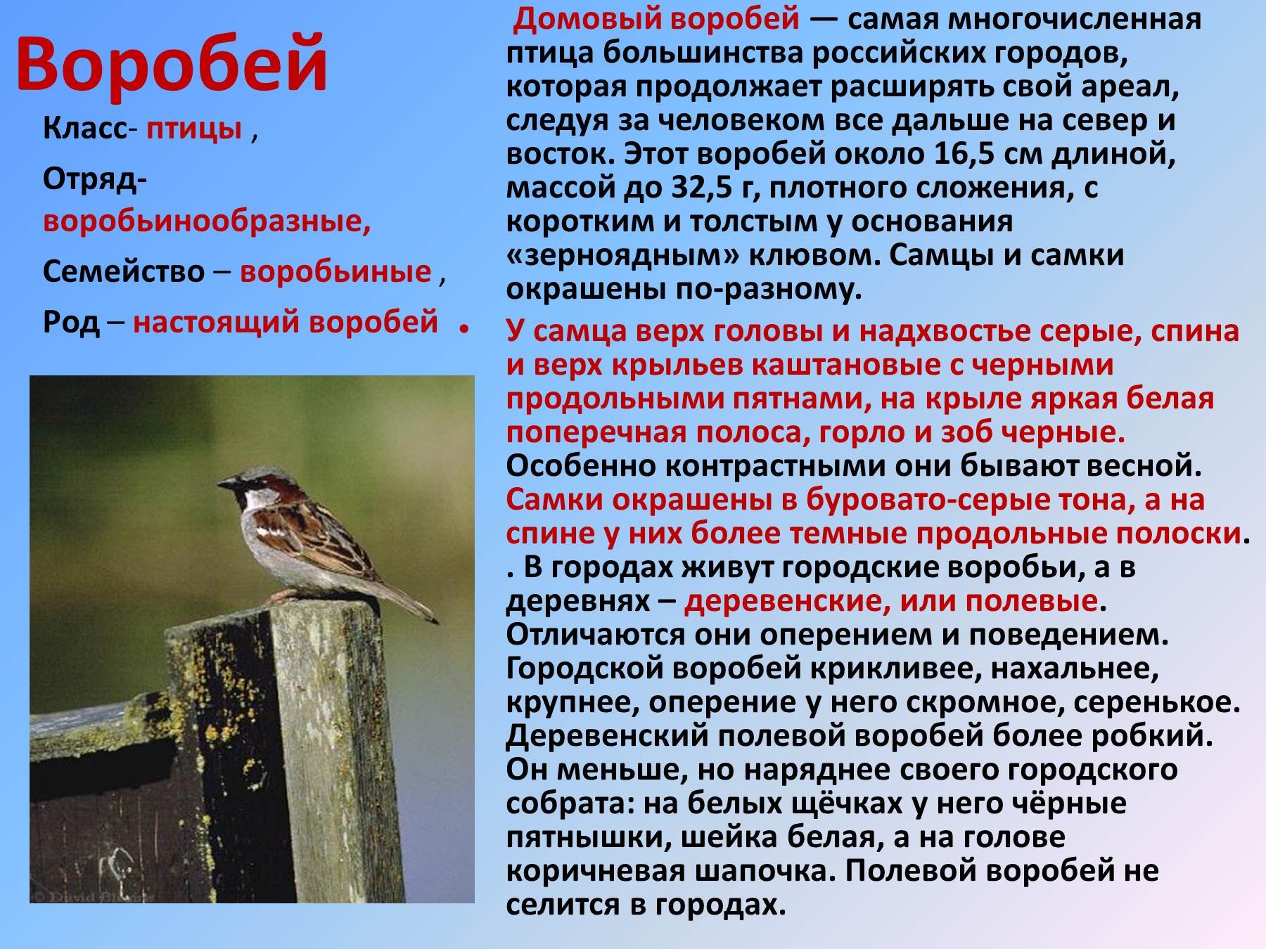 Фото: Домовой Воробей описание