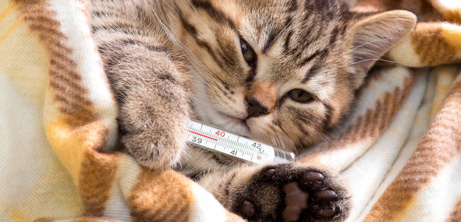Фото: Больной кот с градусником