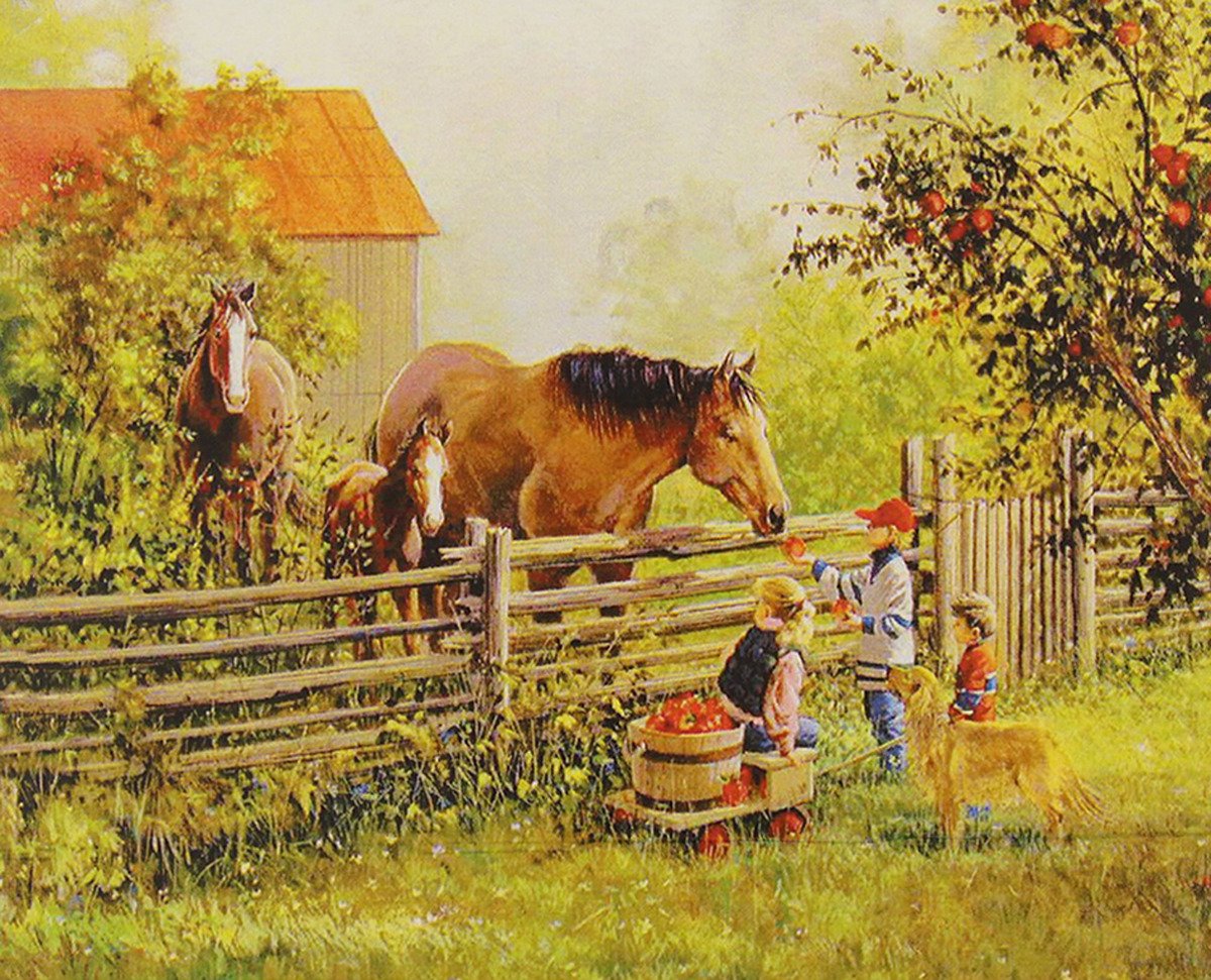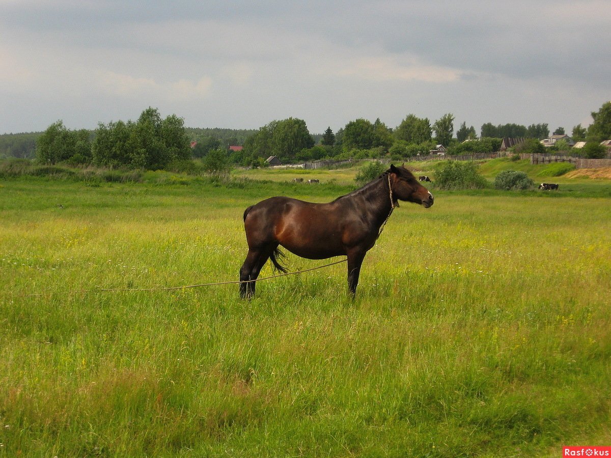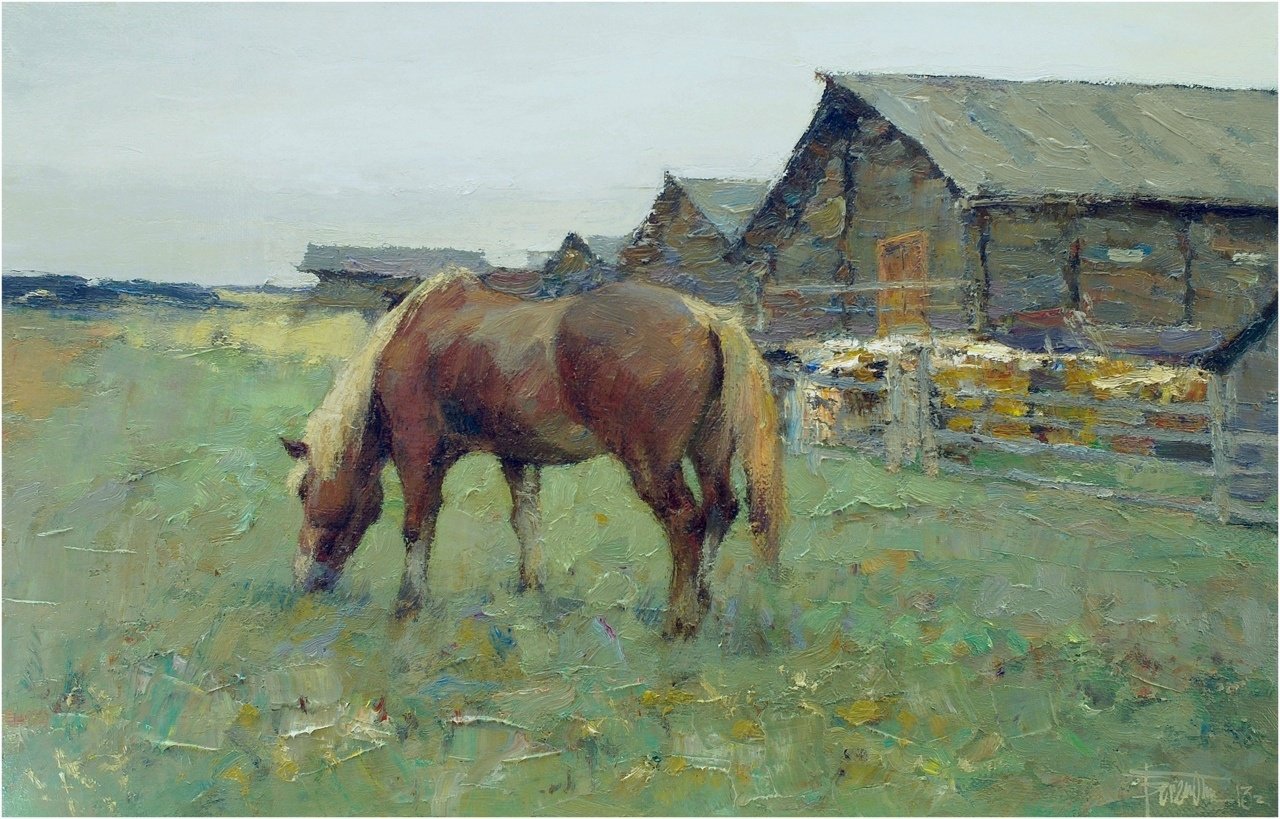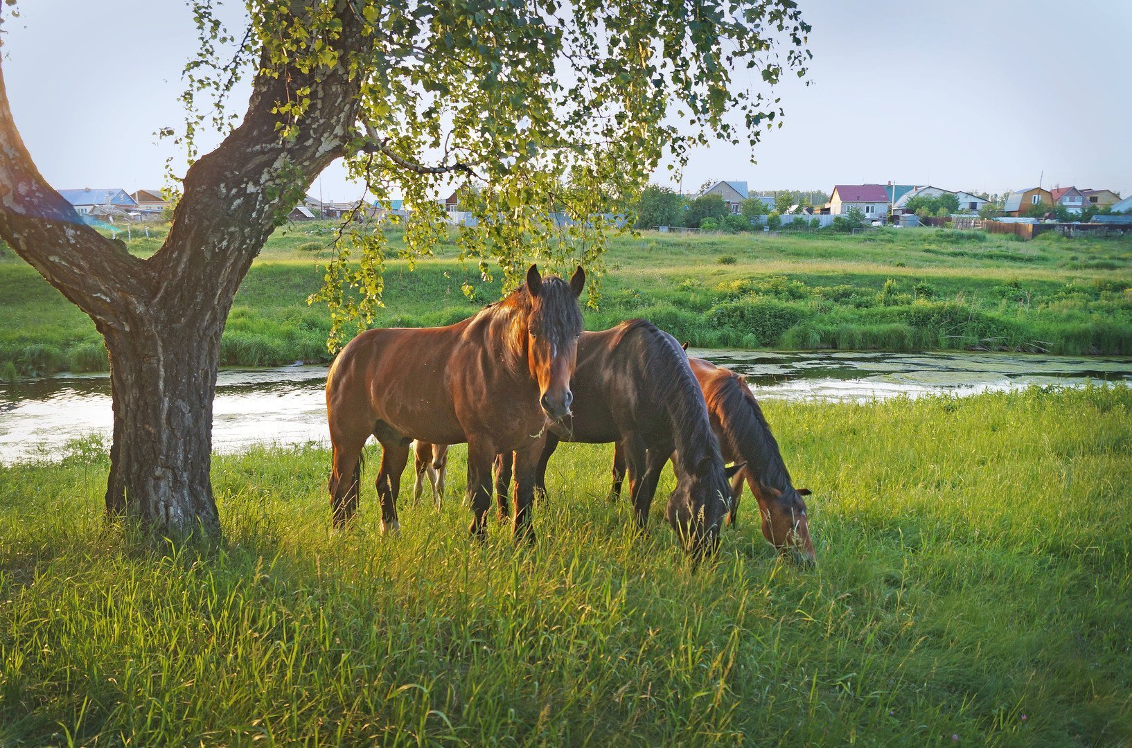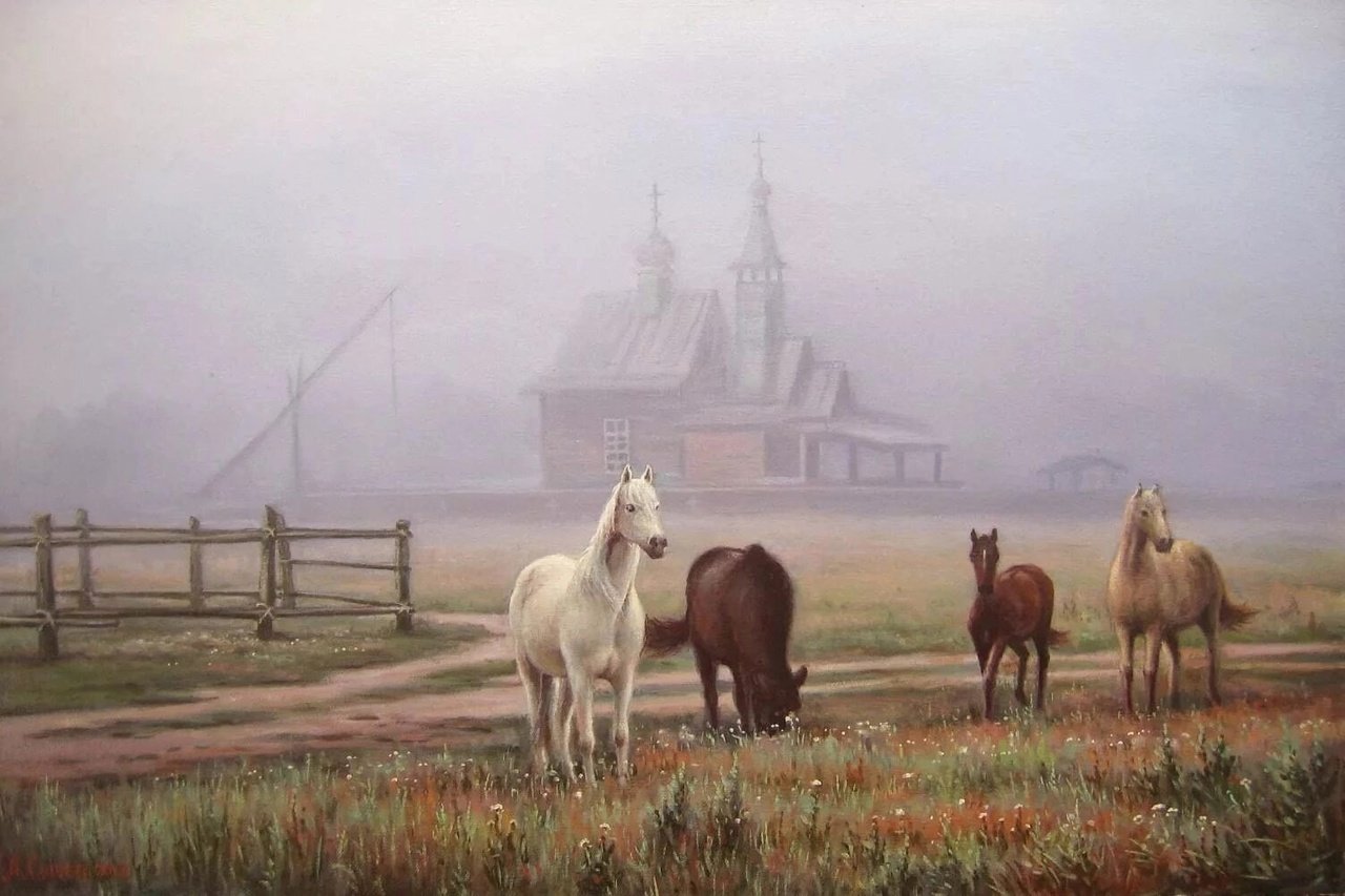 Фото: Деревенский пейзаж с лошадьми