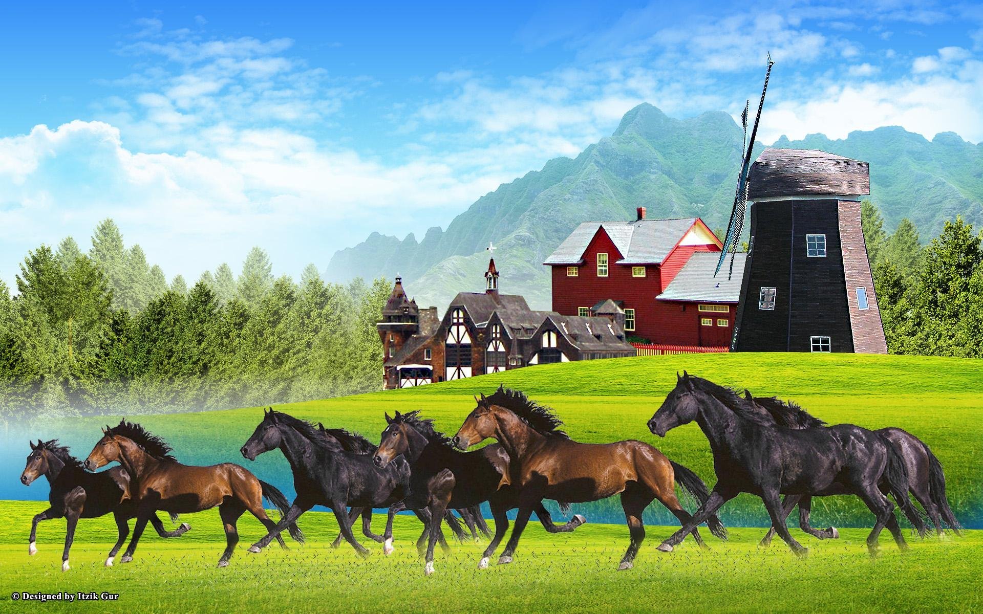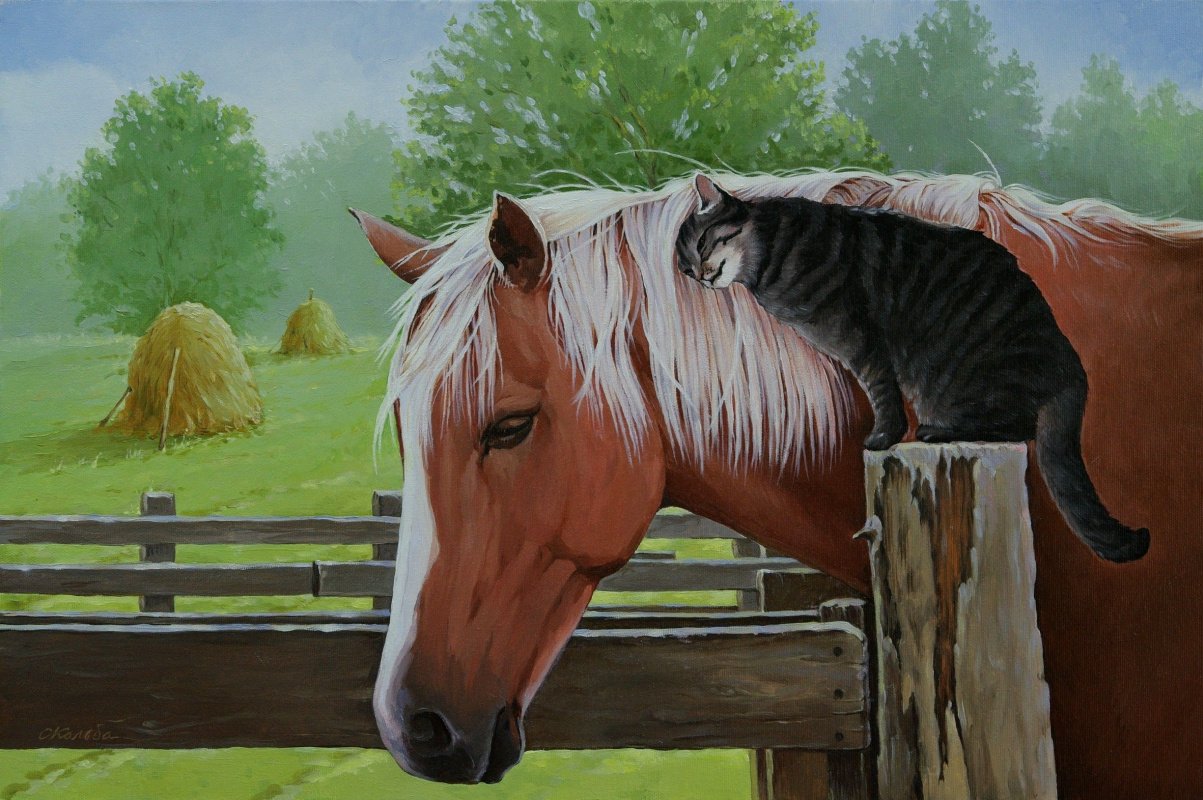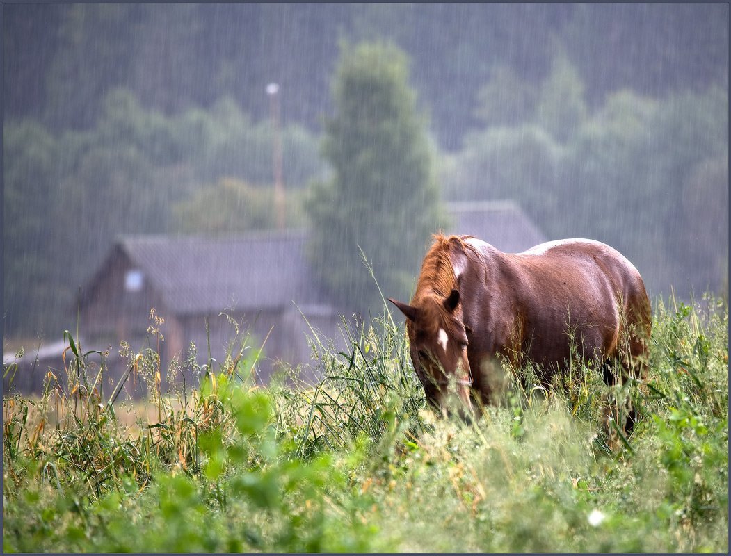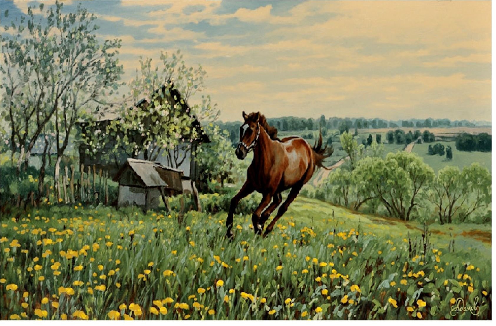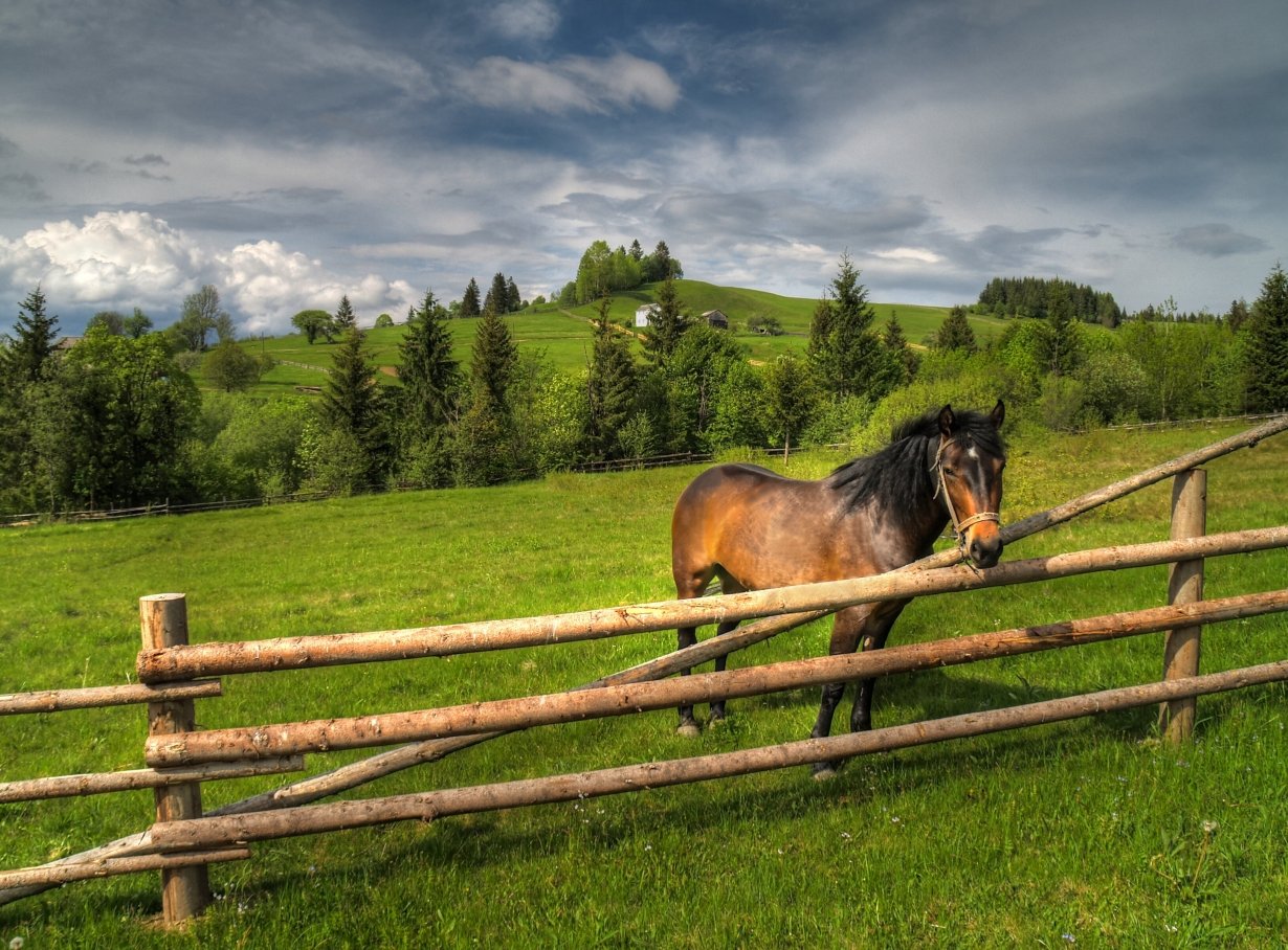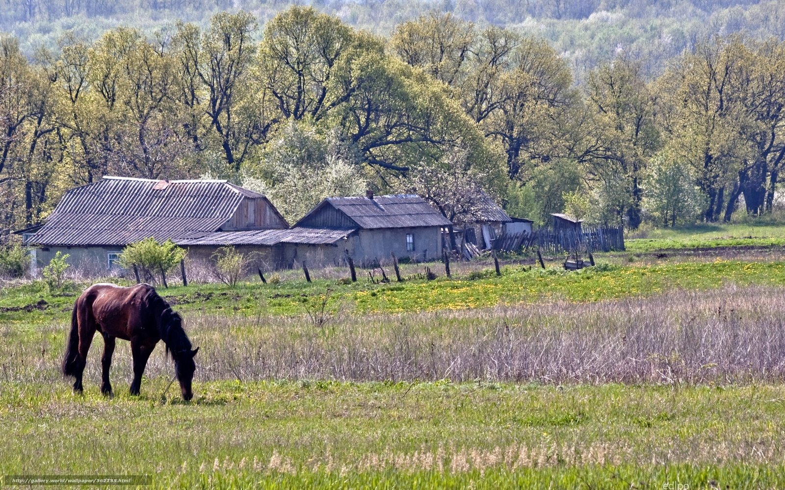 Фото: Деревенский пейзаж с лошадьми
