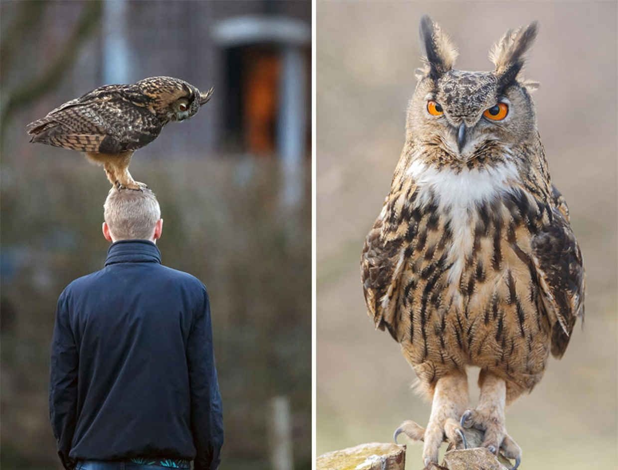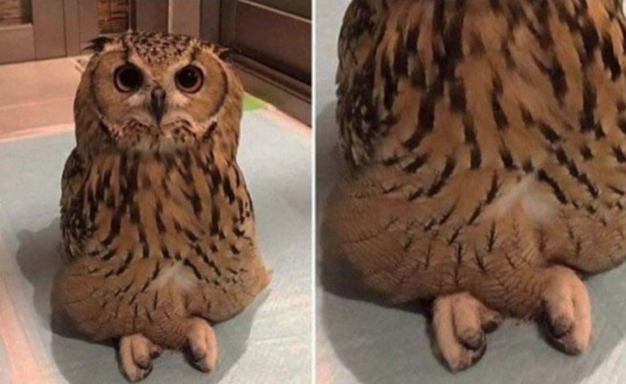 Фото: Сова сидит скрестив ноги