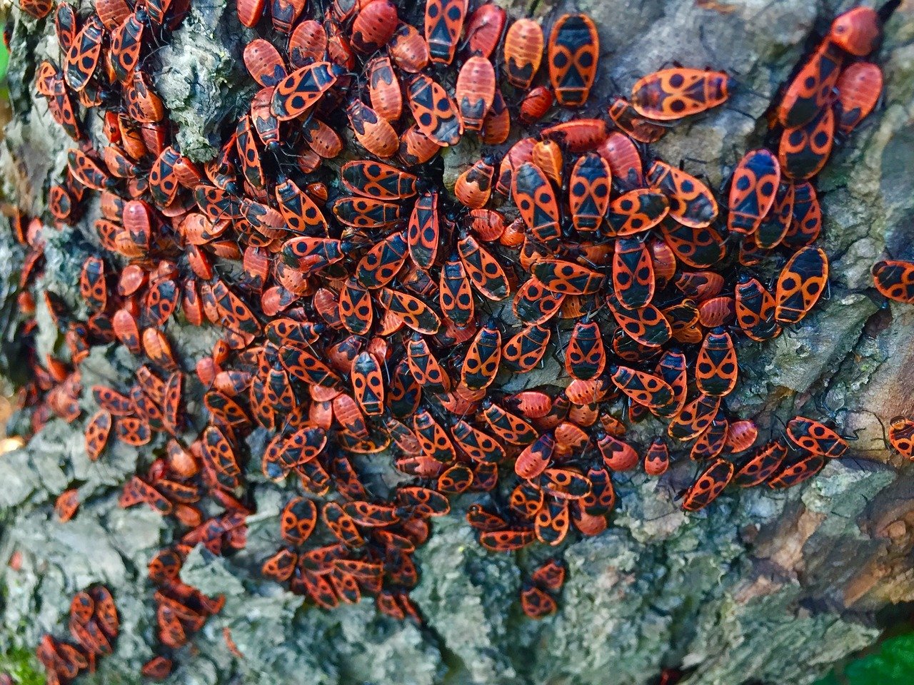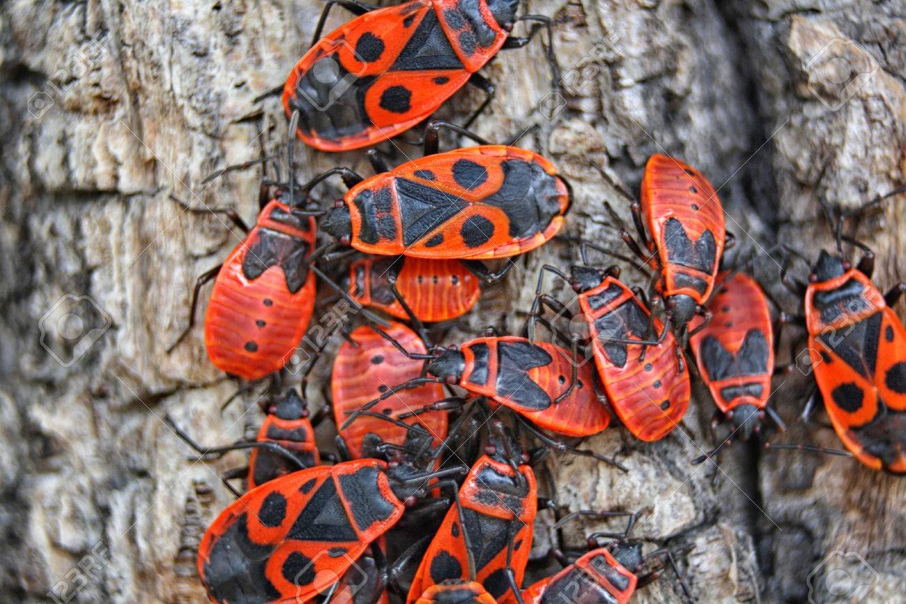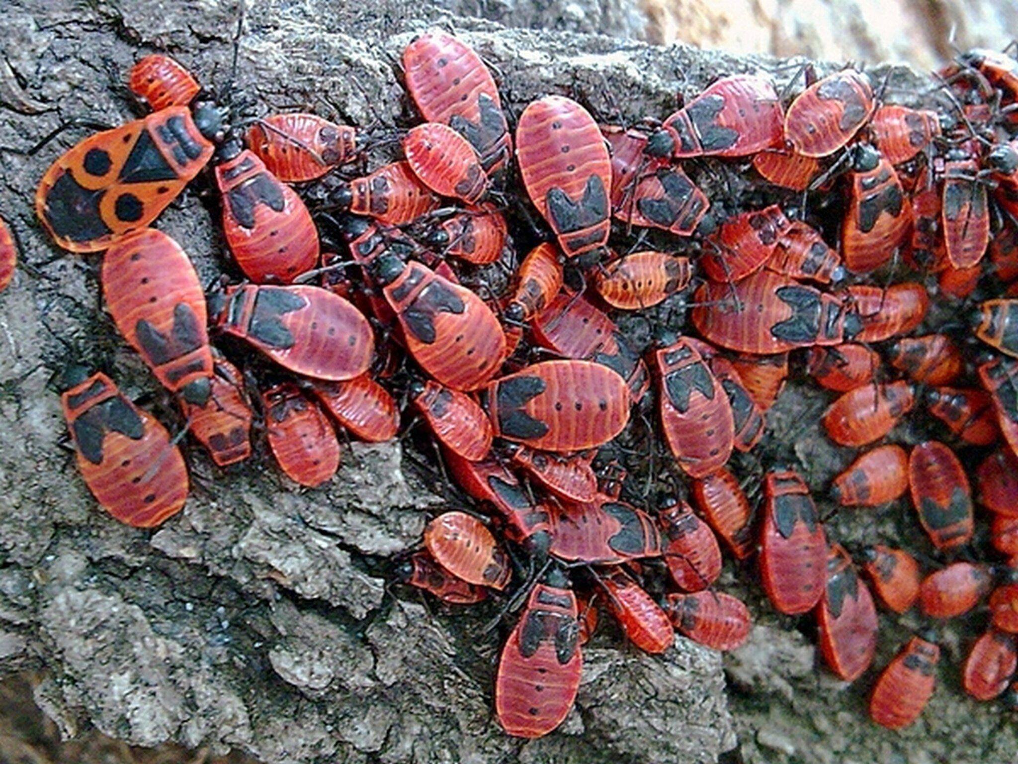 Фото: Красные жуки на деревьях