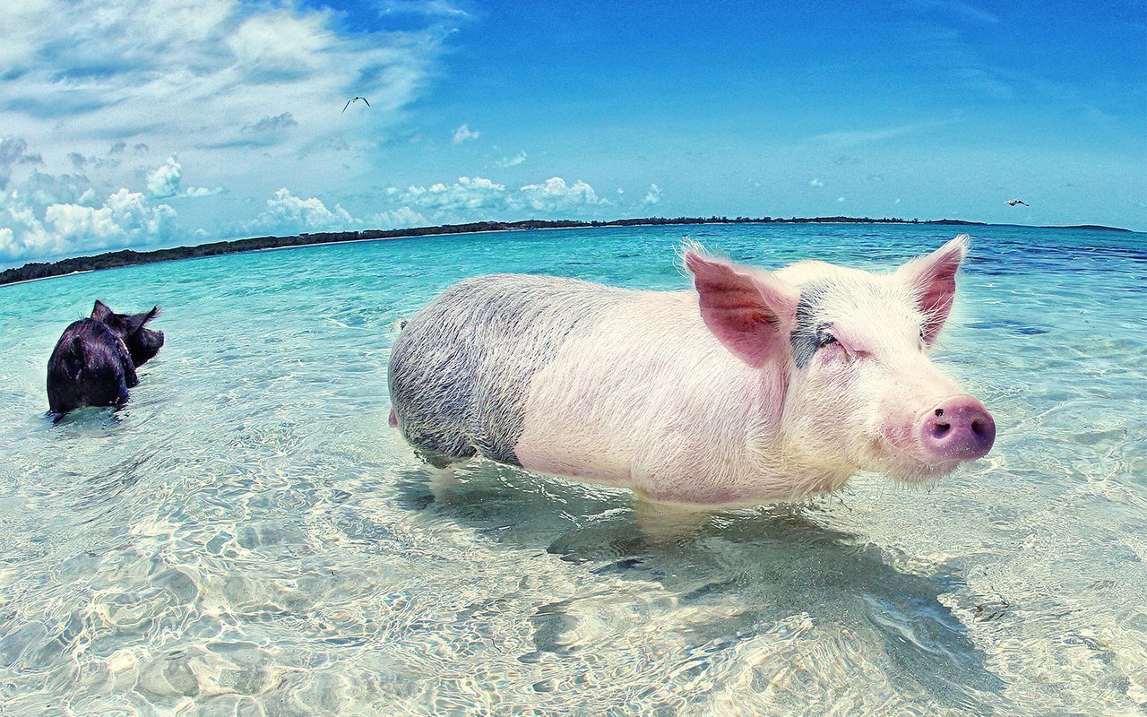 Фото: Свиньи на Багамских островах