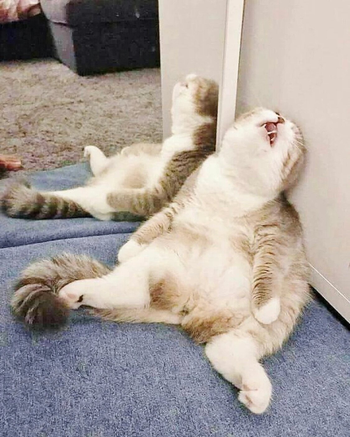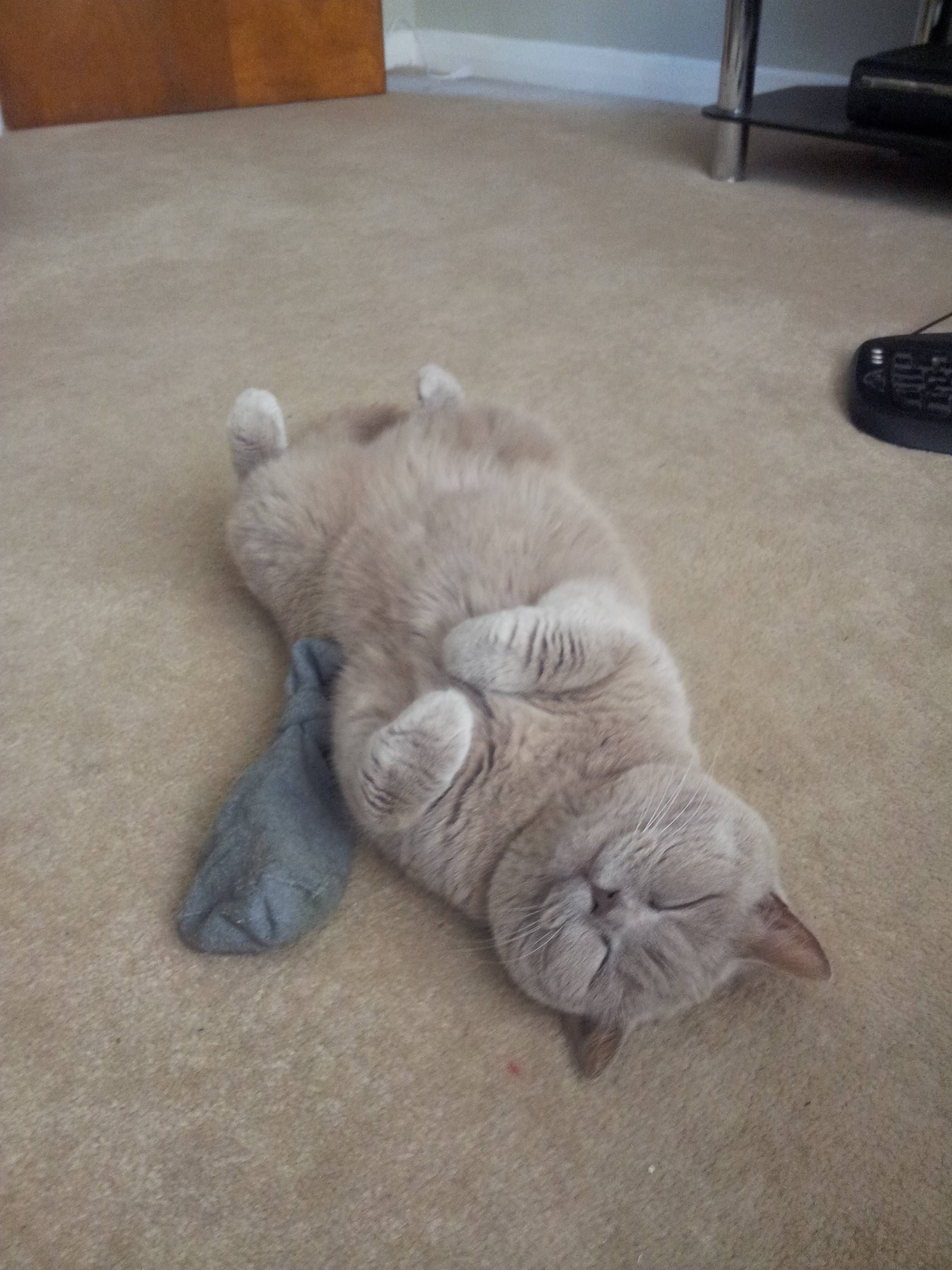 Фото: Кошка смешно лежит
