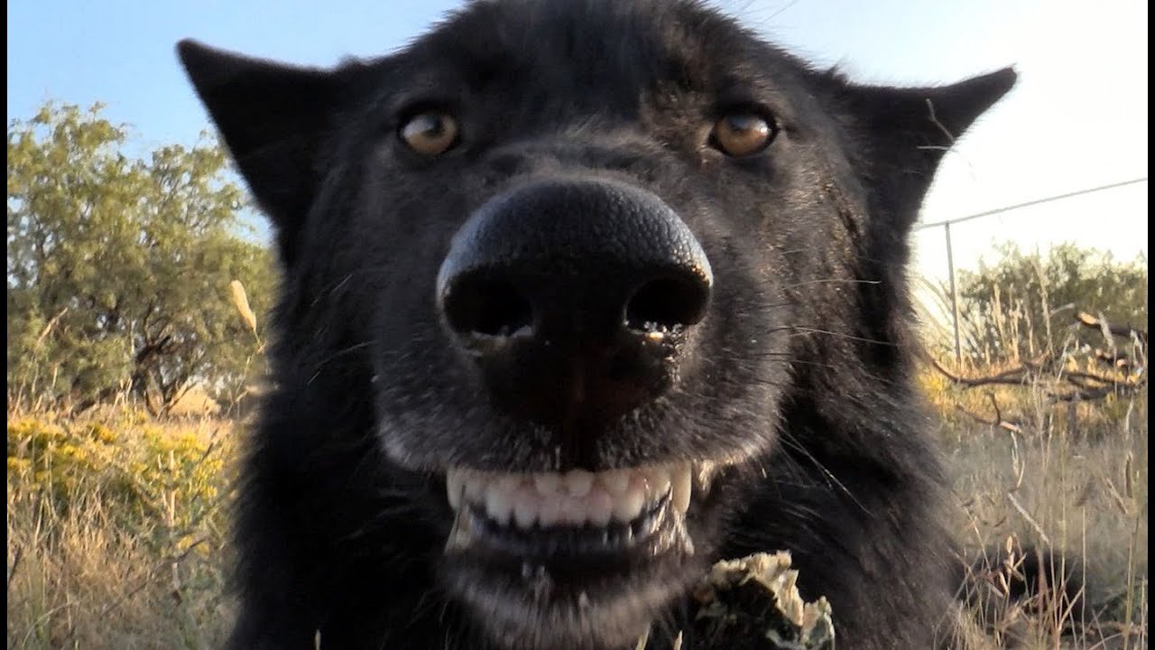 Смешная черная собака